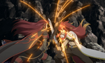 抱きとめたルークは、解放されたローレライの光にのまれて、共に天を貫く...。