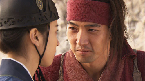 ヤンジョンはテソに、衰退の一途を辿る扶余(プヨ)に 漢がいつ攻撃を仕掛けてもおかしくないので、 今のうちに漢側に寝返るよう説得する。 しかし、テソは扶余の王子としての誇りと愛国心ゆえに決然と断るのだった。 |