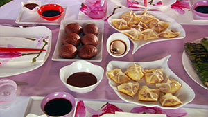 ジャーダ・デ・ラウレンティスは最近、"東洋の真珠"と呼ばれる香港を訪問し、多くのインスピレーションを得てきた。今回作る点心メニューもその1つだ。旅行仲間を招待して、異国情緒あふれる料理を楽しむ。メニューは、チョコレートバオとチョコレートのディップソース、煮込んだショートリブのダンプリングとコーンのピューレ、レンペアヤム、そして梨とゴルゴンゾーラチーズのギョウザ。