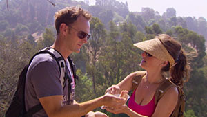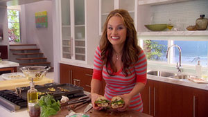 日帰りでハイキングへ行くことにした料理研究家のジャーダ・デ・ラウレンティスと夫のトッド。メニューは、クランベリーとナッツの自家製グラノーラ、網焼き野菜とハーブとゴートチーズのサンドイッチ、そしてホワイトチョコレートとアーモンドをのせたチョコレートラズベリーバー。
