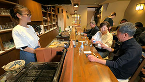さて夕暮れ時、7年ぶりの再訪となる待望の名店「酒処ふじりん」へ。小樽で80年以上続く居酒屋として地元の方に愛され続けています。まずは地酒「宝川 しぼりたて生」の燗で。五代目女将の湊さんおすすめ「にしん明太」は、お腹に辛子明太子を詰めて仕上げた癖になる逸品。そこへ四代目女将・田中さんとの感激の再会へ。小樽の旬をいただきながら、美人女将の心地よい接客に酔いしれた太田さん。小樽で出会えた至宝の酒場に大満足の夜となりました。