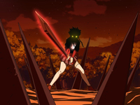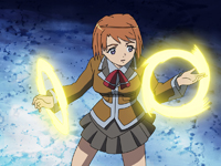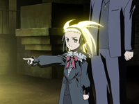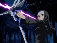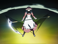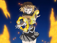従者であるカグツチの炎でオーファンを倒す。その後、学園理事長宅に向かった舞衣。