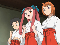 詩帆の祖父の神社で行われる結婚式の手伝いで、バイト巫女を引き受けた舞衣たち。