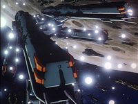 第5話「ステーション・ブレーク」 イシュタル救出に失敗したヒビキとシルビーは、地球に戻った。 そして、マルドゥーク艦内の映像を人々に公開しようと 軍内部の器材で放送を試みるヒビキたちだったが、 保安部隊に取り押さえられてしまう。 その頃、統合軍とマルドゥーク軍による戦闘が開始されていた。 だが、マクロスキャノンを用いても状況は変わらずに・・・。 |