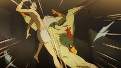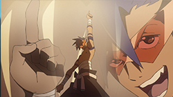 逃げようと提案するシモン。提案を一蹴し、ヴィラルとの再戦を挑むカミナだったが、やはり歯が立たない。