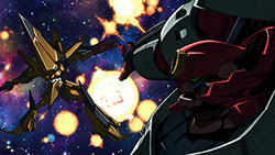 宇宙へ脱出したアークグレンを、軌道上で襲うムガンの大編隊。