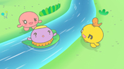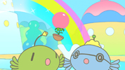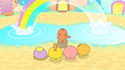 パレード星のポンピコ町は、緑豊かで自然がいっぱいのとっても美しい島です。ここでは、まるくてかわいい不思議な生きものたちが、楽しくにぎやかに暮らしています。
