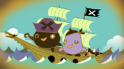 ある日、大好きなチーズでできている星を丸ごと食べちゃう夢を見たonちゃん。 みんなにその話をしたところ、 meちゃんは世界で一番おいしいのは伝説のチーズだと言い、 noちゃんは伝説のチーズは海賊のお宝で、 どこか知らない"島"に今も隠されているのだと言います。 え~、パレード星にポンピコ島以外に島があったの~? みんながびっくりする中、onちゃんは心に決めました。 「ボク、伝説のチーズを探しに行きたいオン!」 (脚本:木滝 りま) |