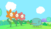 ある日、トマルくんが笛を吹いていると、 笛の音をきいてやってきたかしまし花に、突然質問ぜめにあいます。 とってもおく病なトマルくんは、驚いて完全に固まってしまいます。 「まあ大変!」かしまし花は、仲間を呼んでトマルくんを介抱。 やっと我に返ったトマルくんは、お礼にと美しい笛の音をプレゼント。 かしまし花たちもあわせて歌いました。 その音楽の美しいこと...。 演奏はポンピコ町のあちこちに届いてみんなをシアワセな気持ちにします。 (脚本:樋口 達人) |