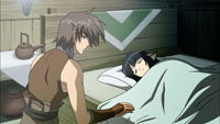 エルルゥの祖母で村長でもあるトゥスクルは、青年に息子の古着を与えた。