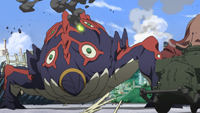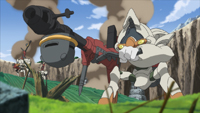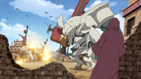 そんな中、汗馬博士が投下した切り札とも言うべきヒトガタ兵器が、胎動窟周辺の町を暴走、破壊していく。