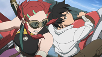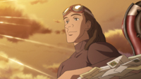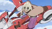 紅皮伊舟 CV:玉井夕海 国際郵便船ザンバニ号の船長。外見は女性的だが、男勝りの性格で、 男の船員たちも顎で使う。戦闘空域周辺を飛ぶこともあるが、 伊舟の的確な指示のもと、ザンバニ号は苦境を切り抜けてきた。 大抵の状況には動じない強さと、アンニュイな空気を併せ持つ女性である。 |
