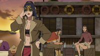 キセル爺 CV:納谷六朗 ザンバニ号の整備工。 無口で人づきあいが苦手だが、自分の興味あることに関しては饒舌になる。 唯一の趣味は酒で、招魂酒が好物。下手の横好き、俳句読み。 |