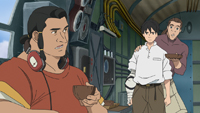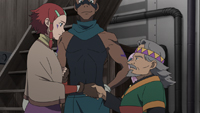 アーム CV:浜田賢二 腕っ節が強く、主にザンバニ号のメイン操縦士と大荷物を担当する。 普段は寡黙で冷静な男で、賭け事を趣味にしている。大人な態度の裏に、 若く熱い思いを隠し持っているが、いつの間にか落ち着いてしまった自分に自嘲気味である。 |