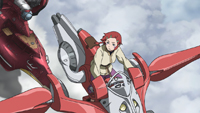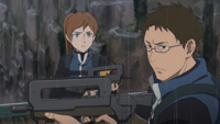 西村ハル CV:折笠富美子 アキユキの幼なじみ。真面目で成績優秀な優等生で、アキユキのことを頼りなく感じている。 爆破事件の時に現れたザムドがアキユキであると信じていて、再び会う事を望んでいる。 アキユキが尖端島を去った後、フルイチと共に極東自治区に入隊し垣巣に気に入られていく。 |