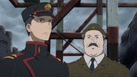 垣巣凍二郎 CV:松本保典 尖端島と南大陸自由圏のハーフである軍人。 憂国の想いを冷徹な相貌に乗せた有事の男である。 軍本営の特命を受け尖端島に派遣され、対ヒトガタ兵器研究に着手する。 独立独歩を望む気持ちから、尖端島の自らの部隊につけた名がすなわち、極東自治区である。 |