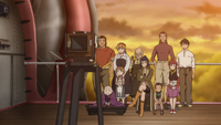 その頃、ザンバニ号では、船員たちが雷魚の写魂機で集合写真を撮っていた。