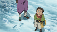 胎動窟を目指し、テシクの郷から旅立つナキアミとヤンゴ。