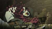 アキユキという自我を失ったザムドは、ヒトガタ兵器との戦いに巻き込まれ、石化を始める。