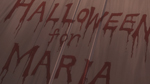 夜明けの礼拝堂の扉に浮かび上がる不気味な魔方陣と「Happy HALLOWEEN for MARIA」の文字。