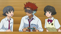 いぶかるキョウだが、遅刻しそうになりゲームソフトをカバンにねじ込んで家を飛び出す。