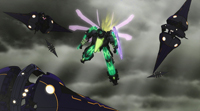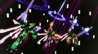 ジフェイタスの電脳空間でアンチゼーガ・マインディエの猛攻にさらされるゼーガペイン・アルティール&ガルダ。