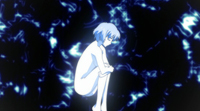 キョウは、負傷したシズノの体が醜くパーティクル化しているのに驚愕し、