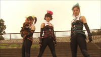 怪盗ダルメシアンを廃ビルの前まで追い詰めたドラゴネット3姉妹。