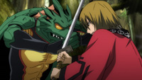 その虚を見抜いたリクオは、妖刀・祢々切丸{ねねきりまる}で竜二に手傷を負わせる。