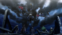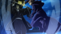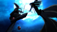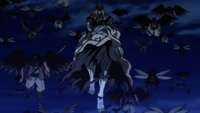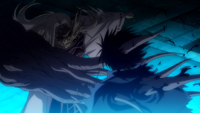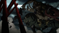 1000年の大儀、闇が光の上に立つ秩序ある世界を理想に掲げる鬼童丸は自身の畏で羅城門{らじょうもん}を生み出し、幾千もの剣戟{けんげき}をリクオに向ける。それに対してリクオは、黒田坊の畏を纏い、立ち向かう。