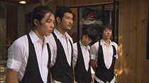 | ウンチャンに女であることを隠されていたハンギョルは深く傷つき、ウンチャンをクビにし、もう会わないと告げる。アメリカに行くことをハンギョルに話したユジュ。ウンチャンとハンソンのことが原因かとハンギョルは問うが、ユジュは否定する。出発の日、ハンソンはユジュを強く引き止めるが、ユジュは傷ついた胸のうちをぶつけ、ハンソンが止めるのも聞かずに空港へと向かってします。ウンチャンとホン社長が抜けたため店は人手が足りず大忙しに。その上、ソンギは、事を混乱させたハリムを責め、メンバーたちは殺伐とした雰囲気に。ハンギョルはハンソンの元を訪れて謝る。ウンチャンのことでハンソンをひどく責めたが、自分はユジュとのことでハンソンに同じ思いをさせていたと気付いたからだった。ハンギョルとハンソンは和解し、ハンギョルはNYへ発ったユジュを思うハンソンを励ます。 |