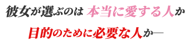 果たして、彼女が最後に選ぶのは愛する人か、それとも必要な人か。