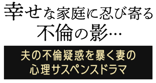 ふとした時にパートナーの携帯やSNSが気になってしまうことはよくあること 。妻が夫の不倫の疑いを暴いていくとともに、一見幸せそうだった夫婦の間に隠されていた溝や裏切りを女性の視点から描く。