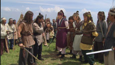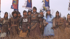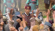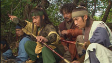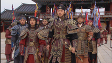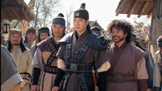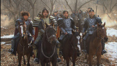タムル軍の砦にやって来たフクチ大将軍(テジャングン)は、 チュモンに、クムワが復位を決意した事を告げ、 自分達はタムル軍ではなく四出道(サチュルト)を攻撃するつもりだと伝える。 チュモンはフクチ大将軍に、漢軍が扶余(プヨ)を攻めて来た場合、 タムル軍がそれを阻止する事を約束する。 |