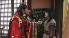 ヤンジョンはテソに、衰退の一途を辿る扶余(プヨ)に 漢がいつ攻撃を仕掛けてもおかしくないので、 今のうちに漢側に寝返るよう説得する。 しかし、テソは扶余の王子としての誇りと愛国心ゆえに決然と断るのだった。 |
