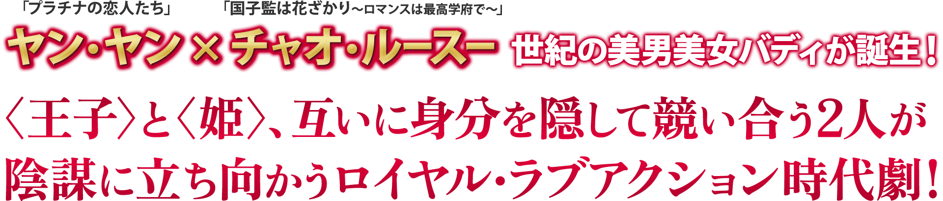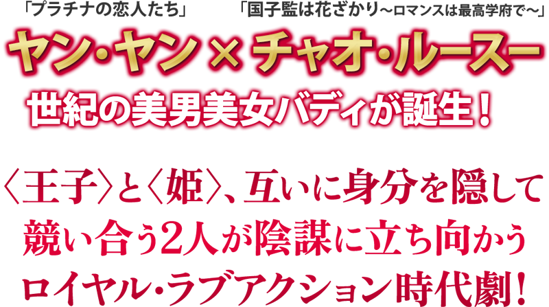 主演ドラマすべてがメガヒットを記録、映画『プロジェクトV』ではジャッキー・チェンと共演するなど、今や中国の至宝とも言える別格の人気と実力を誇るトップスター、ヤン・ヤン。そんな彼が、王子と侠客の2つの顔を持つ究極のヒーローに大変身! アクションもロマンスも完璧にこなす"Mr.パーフェクト"な魅力を存分に発揮し、進化する役者ヤン・ヤンの新境地を確立! そして彼とバディを組んで天下を守る最強のヒロインを演じるのは、愛嬌あるキャラクターで"華流ラブコメの女王"として中国ドラマ界に名を馳せる人気女優チャオ・ルースー。今作では彼女の天真爛漫な可愛さはそのままに、武芸の達人という凛とした演技も見せ、一味違う一面に視聴者から大絶賛を浴びた! 初めは好敵手だった2人が助け合うことで同志となり、やがて唯一無二のパートナーへと変化していく恋愛模様や、複雑に絡み合った王朝と江湖の策謀や裏切り、そして次第に明らかになる黒幕の存在など、予測不能な物語に惹き込まれる究極のロマンスアクション時代劇!