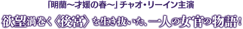 チャオ・リーインが演じるヒロイン・陸貞は、欲望渦巻く宮廷の中で、多くの涙を流しながらも、苦難を乗り越え、懸命な努力と類まれな才能で宰相にまでのぼりつめていった善良で聡明な女官。これまで多くの視聴者に愛されてきた「宮廷女官チャングムの誓い」「トンイ」に続く、健気で聡明な一人の女官の物語! 放送開始するや否や、中国の主要放送局全32局で視聴率1位を獲得するなど非常に注目度の高い、高視聴率ドラマ!