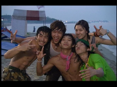 チームのメンバーと一緒にビーチで遊ぶヒョクジュとサンミ。