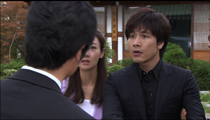 第43話「ヒョンモの訴え」 実母のことでショックを隠せないヒョンモは、その夜は家に帰らず、地方の宿からジウォンに会いたいと電話をかける。駆けつけたジウォンを見てヒョンモは泣き崩れ、ジョンハを殺そうとしたのは自分ではないと訴える。ヒョンモは実の母親の墓参りを済ませ、つまっていた胸の内をジウォンに話し始める。そして必ずテープを捜し出し、もう一度検察に自首する約束する。一方、2人の帰りを待っていたジョンハはたまりかね、ジウォンにプロポーズする。 |