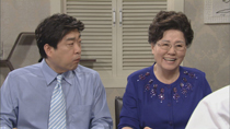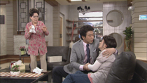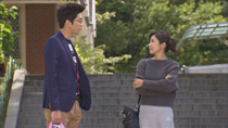第41話「とうとう母が家出」 ウジンから、ヨンシルとの再婚を聞かされたソンジェの母は、ジヨンに連絡先を聞いて、ヨンシルに再婚をあきらめろと迫る。だがヨンシルは、格が違うと言われようとも動じず、笑顔で余裕の返答をする。ジヨンの父は、認知症で施設に収容された元妻ヨンスクとジョンミンを会わせ、秘密を抱えたままジョンミンを息子として家に迎え入れることに。再婚するなら親子の縁を切ると言う母にソンジェは開き直った態度を取って、2人は平行線を辿る。とうとう母は家出し、ジヨンはおせっかいにもミジンに、親を立てるよう忠告する。 |