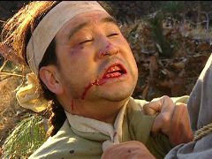 ホ・ジュンは船を戻そうとするが、それも間に合わぬまま、皆の見守るなか、後ろから追いかけて来た敵の鉄砲に倒れてしまう。