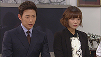 第12話 BYグループが被告側になっている裁判で不利な証拠が見つかったため、ドヒの叔母であるインスクが担当検事のヒョンソクに賄賂を渡しに行く。しかしそれが会長にばれて、罰としてインスクは物置に閉じ込められる。ドヒはこの事件でストレスが溜まり、発散のためジュンスとお酒を飲みに行き、明け方まで公園で一緒に過ごす。 |