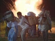 避難途中、食糧が尽きて病気の祖母を亡くしたヨンソク一家は悲しみに暮れる。 一方、ジョンリムは家族と別れて祖父と釜山へ向かうが、砲撃に遭い全財産が入ったカバンを紛失。 偶然その場に居合わせたヨンソクは落ちてきたカバンを抱え込んでしまう。 |