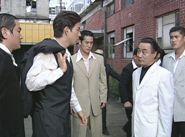ヒョンウを拉致した熊は東亜貿易を放棄しろと暴力で迫る。 だがヒョンウは、持ち主は他にいてお前に権利はないと言って拒む。 拉致現場を発見したヒョンシクは、1人で踏み込み負傷した兄を抱えてその場を去ろうとするが、熊は2人に銃口を向ける。 |