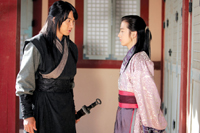 十数年後、先王チュモンの墓がある箕林窟〔キリムくつ〕で育ったムヒュルは、盗賊達から乳母ヘアプを助けようとして逆に捕まる。盗賊の目的は神廟にある神剣だが侵入者を阻む仕掛けがあるため容易には近付けず、ムヒュルがその役目を負うことになる。そこへヘミョンが現れ、盗賊達を一掃。彼らが扶余〔プヨ〕の王テソの刺客だと知る。外の世界に出たいというムヒュルの心を止められないとヘアプに言われたヘミョンは、ムヒュルを卒本〔チョルボン〕の兵士にすることに。 |