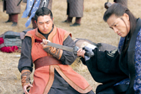 ヘミョンはムヒュルとともに、軍を率い黄龍国〔ファンニョンこく〕に向かうテソに奇襲をかける。ムヒュルを助けようとしたヘミョンは負傷、テソはムヒュルが放った槍に倒れる。ヘアプの下に運ばれたヘミョンは、ユリ王にテソを殺したと伝えるようムヒュルに託す。 ムヒュルから伝言を聞いたユリは事実確認を配下に命じる。一方、ヘミョンはムヒュルが何者なのかと訊ねるヘアプに、彼が高句麗の王子であることを明かす。 |