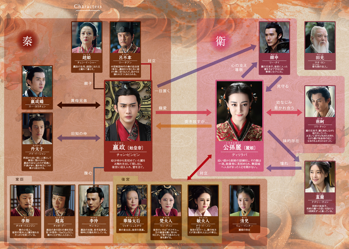 秦の侵攻に周辺諸国が抵抗していた紀元前240年頃、祖国である衛を追われた麗( れい)、秦の始皇帝・嬴政(えいせい)、麗の初恋相手で後に燕国の刺客として始皇帝と対峙する荊軻(けいか)を軸に、戦国時代の秦の進出を描くロマンチック叙情歴史ドラマが登場!