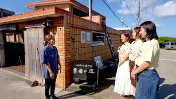 ティンクティンクの3人は昔ながらの製法で作られている「粟国の塩工場」へ。粟国近海の海水を使用したミネラル豊富なお塩ができるまでの工程を見学。島の観光名所である、珍しい二枚岩の「東ヤマトゥガー」や、多様な岩石や地層が広がる「ヤヒジャ海岸」を訪れます。白色凝灰岩でできた白亜の壁は、他の離島にはない見所の一つです。