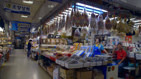 ここ、チャガルチ市場では釣り船の魚をその場で直接購入ができ、市場で処理をして貰ったあと2階にある27軒のレストランに持ち込むと、様々な調理をしてもらうことができます。その新鮮さと斬新さは訪れる人々を驚かせ楽しませています。