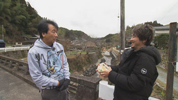 福岡県八女市上陽町地区は八女市の中でも山間部にあたり、「奥八女」とも呼ばれ、どこか懐かしい暮らしが今も息づいる地域です。まずは、かつて八女茶やシイタケ、ナスなどを栽培していた元農家の男性宅を訪問。現在は小さな家庭菜園で育てた野菜を自身の子供や近所におすそ分けして喜ばれることが生きがいなんだそう。前川さんも立派な野菜をいただき大喜び。続いては去年還暦を迎えた男性との出会い。親孝行な息子から還暦祝いで旅行のプレゼントをしてもらったほっこエピソードで盛り上がります。さらには、なぜか車の中で新聞の記事をノートに書き写していた女性にも遭遇。情緒ある奥八女で、終始笑いが絶えない出会いの連続に大満足の前川さんでした。